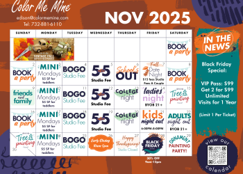 Welcome to Color Me Mine Edison, we are located on Level 1 Next to Nordstrom. Walk-ins are welcome!
